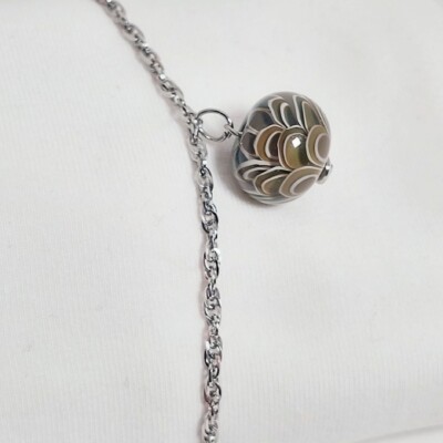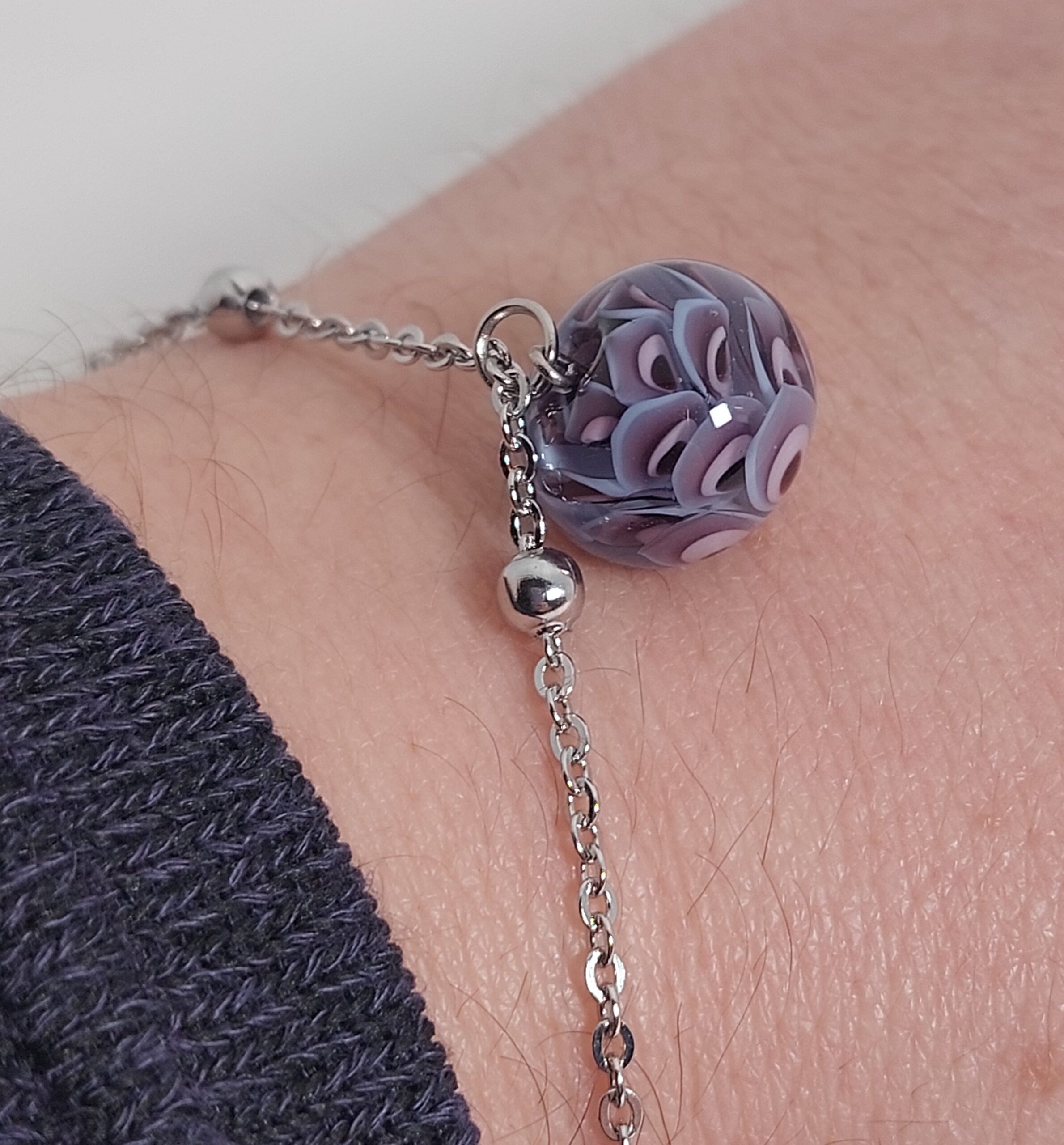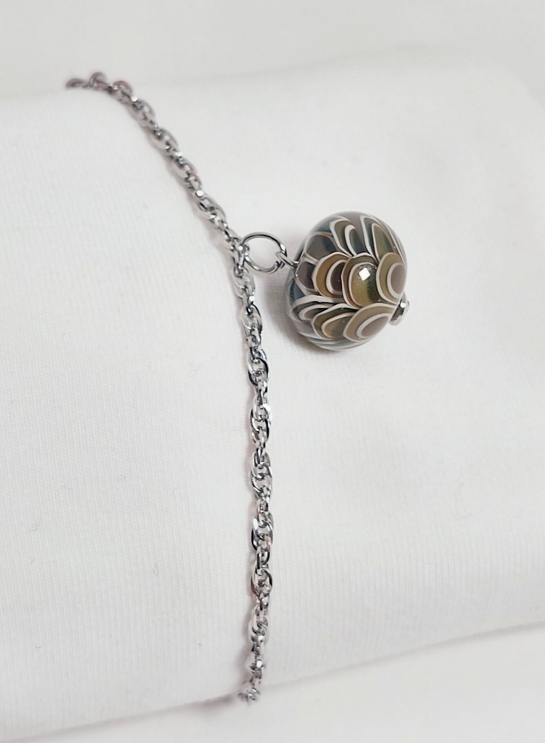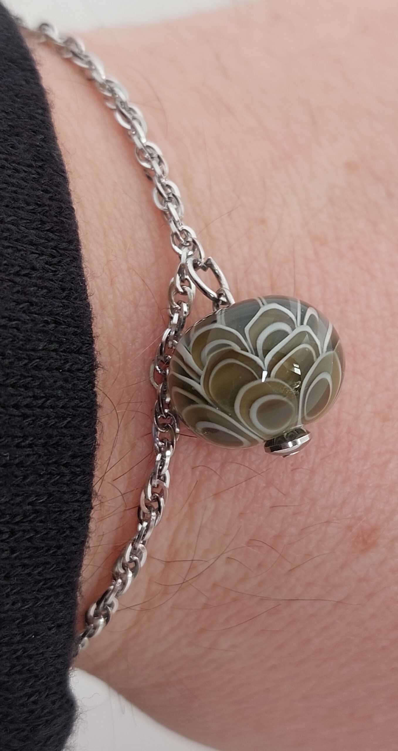De armband/ketting is gemaakt van stainless steel met een karabijnsluiting en natuurlijk de glaskraal als blikvanger.