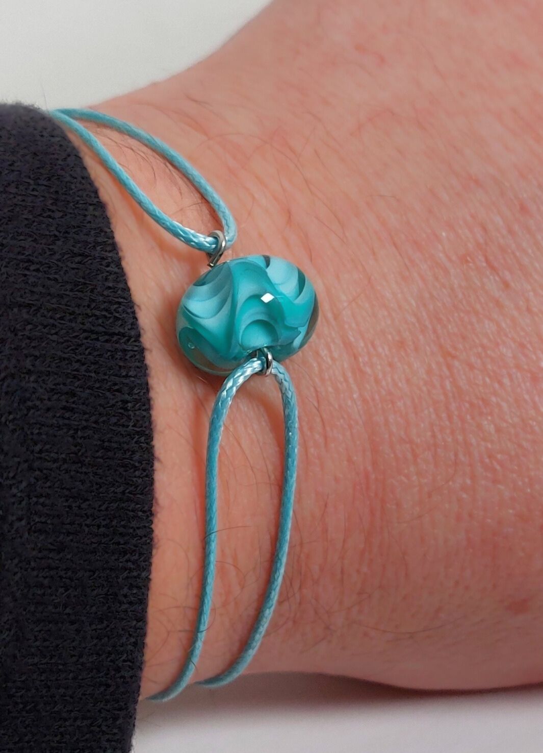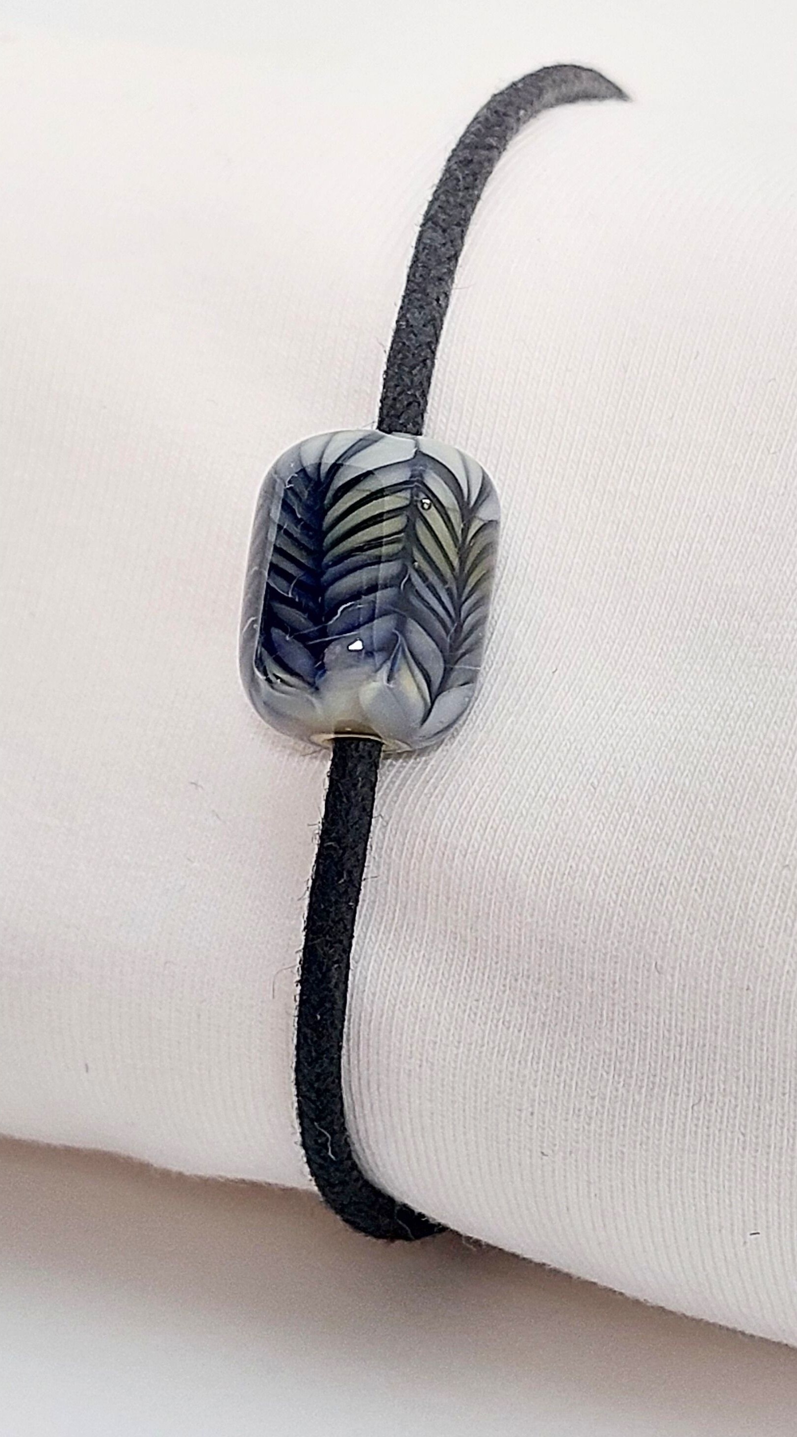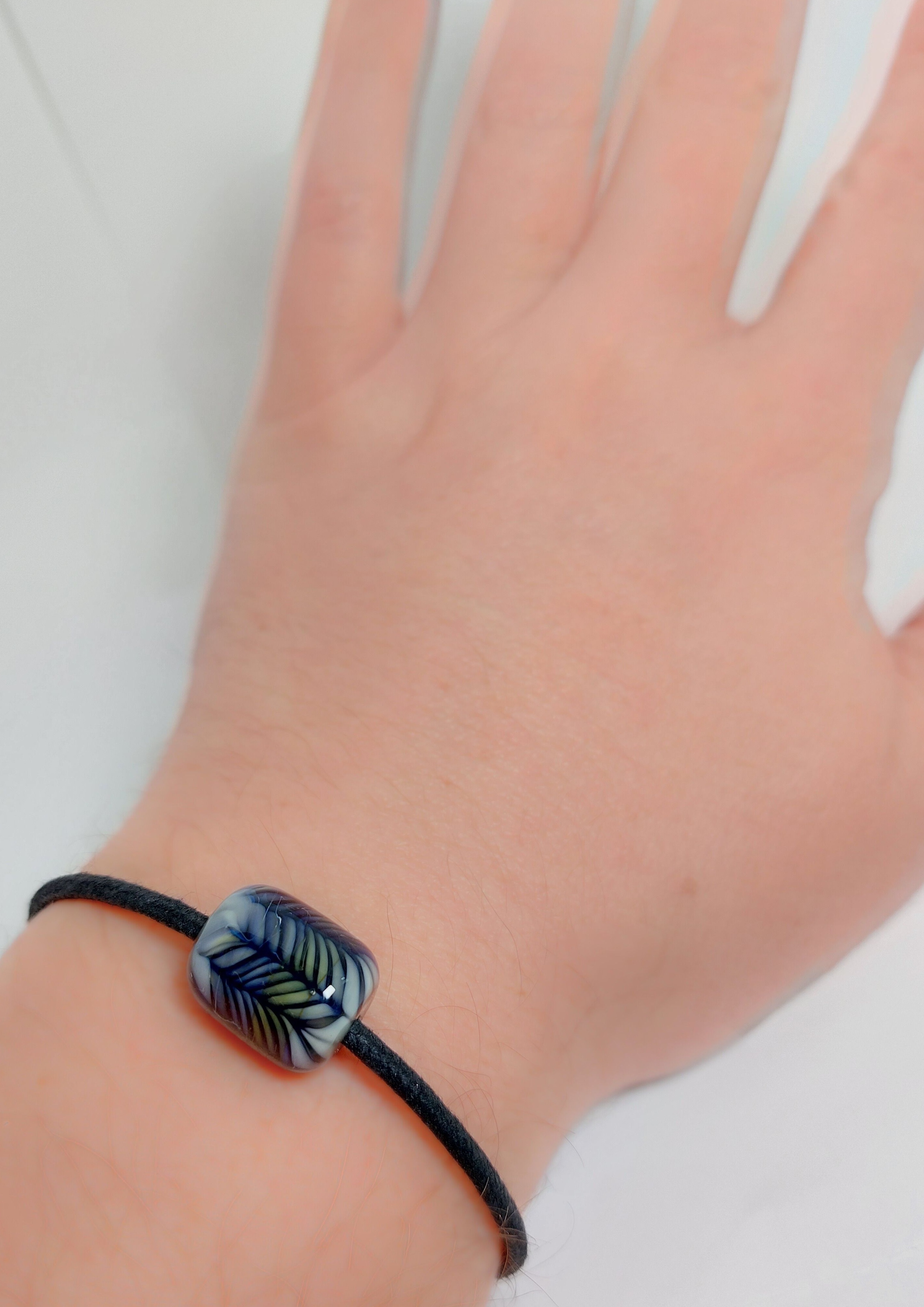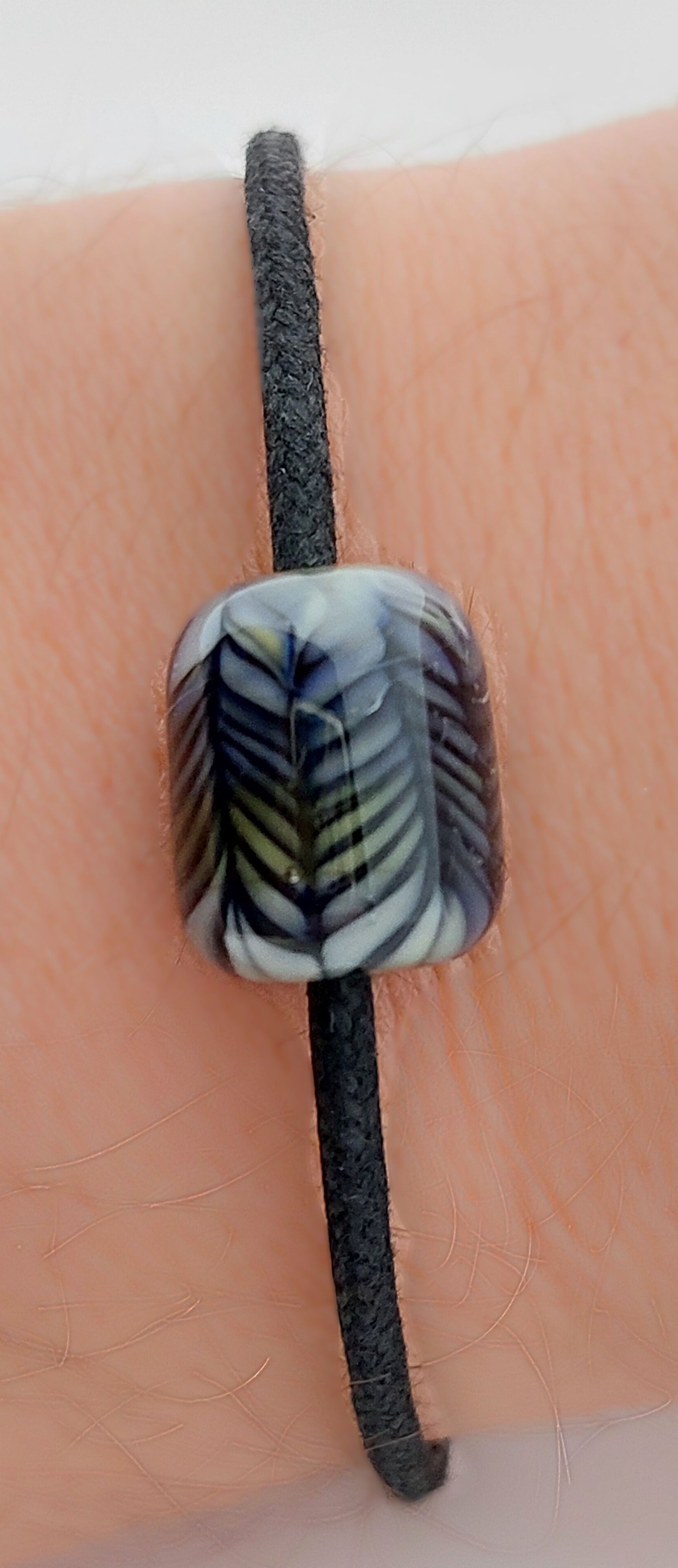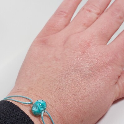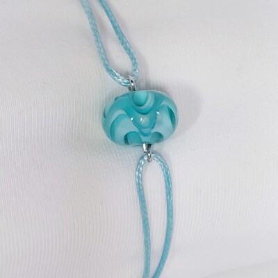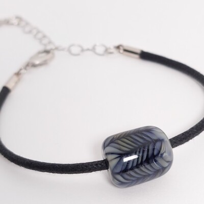 Mooi in zijn eenvoud! Deze minimalistische armband laat de diepte in deze prachtige glaskraal goed uitkomen.