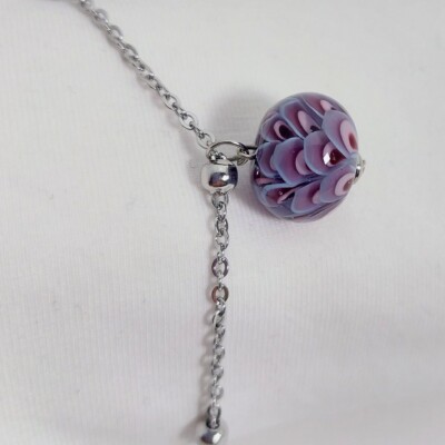 Zilverkleurige rvs armband/ketting met paarse glaskraal